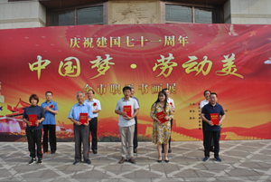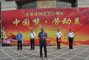 為慶祝建國(guó)七十一周年,展示我市物質(zhì)文化偉大成就和全市職工昂揚(yáng)向上、奮發(fā)有為的精神風(fēng)貌,由中共新泰市委宣傳部、新泰市總工會(huì)主辦,山東澤華置業(yè)集團(tuán)有限公司、新泰市工人文化宮承辦,新泰市文化旅游局、新泰市文聯(lián)、新泰市書(shū)法家協(xié)會(huì)、新泰市美術(shù)家協(xié)會(huì)協(xié)辦的“中國(guó)夢(mèng)·勞動(dòng)美”全市職工書(shū)畫(huà)展,9月22日在新泰文化藝術(shù)城隆重開(kāi)幕。新泰市人大副主任、總工會(huì)主席朱致義同志,新泰市文化和旅游局局長(zhǎng)高會(huì)利同志,新泰市文聯(lián)社科聯(lián)黨組書(shū)記、主席徐勤啟同志,山東澤華置業(yè)集團(tuán)有限公司工會(huì)主席趙亮同志出席了開(kāi)幕儀式,開(kāi)幕式由新泰市委宣傳部分管日常工作的副部長(zhǎng)范清君同志主持。