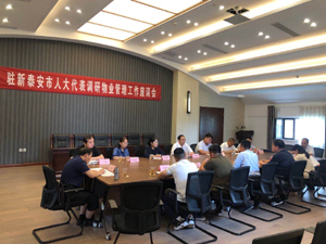 其次,調(diào)研組與新泰市房產(chǎn)管理服務(wù)中心及部分人員在東城田園營銷中心四樓召開座談會(huì),就新泰市物業(yè)企業(yè)的基本情況、紅色物業(yè)黨建工作的主要做法以及企業(yè)存在的困難問題、打造“紅色物業(yè)的意見建議”等進(jìn)行了座談交流。