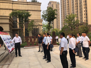 調(diào)研組首先到清華園社區(qū)查看黨建工作,隨后到達(dá)東城田園小區(qū),調(diào)研組先后對(duì)東城田園紅色樓宇、小區(qū)文化、物業(yè)服務(wù)中心等進(jìn)行現(xiàn)場查看,并聽取了華通物業(yè)對(duì)小區(qū)規(guī)模、物業(yè)管理模式、黨建引領(lǐng)等“紅色物業(yè)”工作情況的匯報(bào),調(diào)研組對(duì)東城田園小區(qū)推動(dòng)“紅色物業(yè)”作了充分的肯定,并就黨建引領(lǐng)、紅色物業(yè)創(chuàng)建等工作做出了指導(dǎo)。