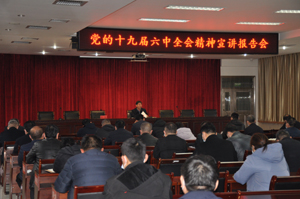 12月14日上午,在山東澤華集團二樓會議中心舉辦黨的十九屆六中全會精神宣講報告會。出席本次宣講活動的領(lǐng)導有新泰市副市長李彬,青云街道黨工委委員、常務副主任張超,參加會議的還有街道直屬企業(yè)領(lǐng)導班子、中層管理人員。