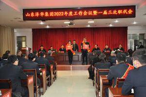 2022年1月23日上午,在集團公司二樓會議中心,召開山東澤華集團2022年工作大會暨工會一屆三次職代會。出席本次會議的領(lǐng)導(dǎo)有市財政局副局長崔登斌、市住建局副局長周振國、工程科科長齊文波、青云街道辦事處主任丁洪存、副主任譚茂安、工委主席牛均亮。參加會議的還有集團公司領(lǐng)導(dǎo)班子、各公司領(lǐng)導(dǎo)班子、全體管理人員、項目經(jīng)理、華通物業(yè)相關(guān)負(fù)責(zé)人、潤發(fā)建工企業(yè)代表。大會由集團黨委書記田清坤同志主持召開。