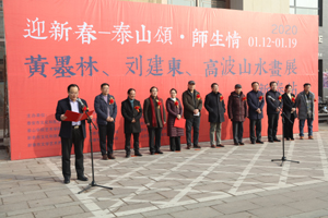 為展現(xiàn)泰山自然和文化的博大精深,贊美泰山,宣傳泰安,慶祝中華人民共和國成立70周年,2020年1月12日,由泰安市文化和旅游局、泰山學(xué)院藝術(shù)學(xué)院、新泰市委宣傳部、新泰市文化和旅游局、新泰市文聯(lián)、青云街道辦事處主辦,泰安市美術(shù)館、新泰市美術(shù)家協(xié)會(huì)、山東澤華置業(yè)集團(tuán)承辦,泰安市美術(shù)博物館、泰安市泰山畫派研究會(huì)、新泰市文化產(chǎn)業(yè)協(xié)會(huì)協(xié)辦的“第三屆泰安市文化惠民消費(fèi)季”黃墨林、劉建東、高波“泰山頌?師生情”山水畫展新泰站”在新泰文化藝術(shù)城隆重開幕。泰安市文化和旅游局二級(jí)調(diào)研員李京泰同志,泰山學(xué)院藝術(shù)學(xué)院教授黃墨林同志,泰山學(xué)院藝術(shù)學(xué)院副院長(zhǎng)李天軍同志,泰安市文化藝術(shù)中心黨委委員、美術(shù)館館長(zhǎng)劉建東同志,新泰市副市長(zhǎng)周典紅同志,新泰市委宣傳部分管日常工作副部長(zhǎng)范清君同志,新泰市文聯(lián)主席徐勤啟同志,青云街道黨工委委員、宣傳委員張瓅銘同志,新泰市美協(xié)、書協(xié)主席陳廣秀同志,泰安市美協(xié)常務(wù)副主席高波同志,山東澤華集團(tuán)董事長(zhǎng)、總經(jīng)理王成喜同志出席了開幕儀式。開幕式由新泰市文化和旅游局局長(zhǎng)高會(huì)利同志主持。