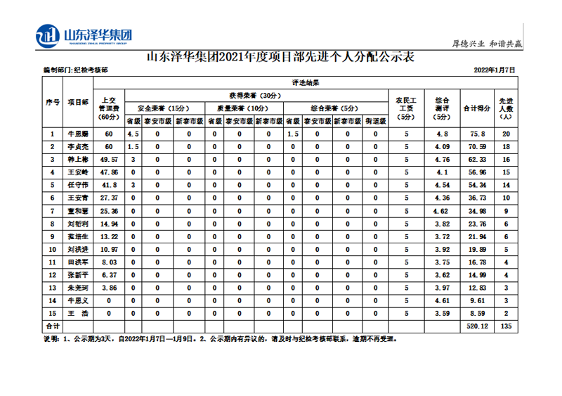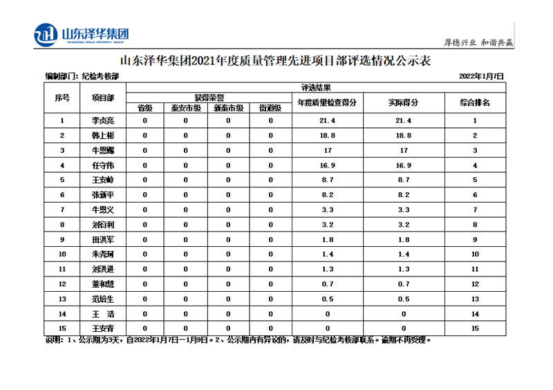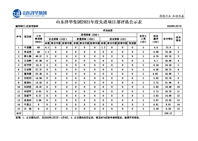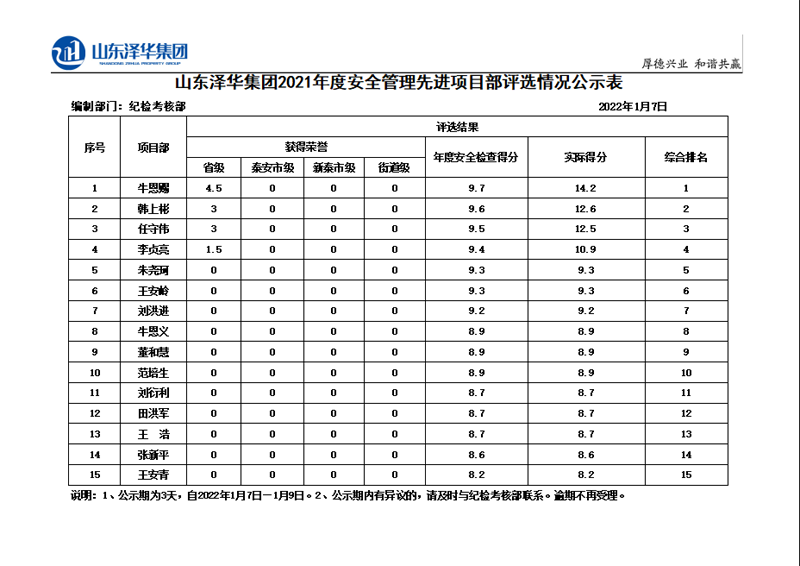 2021年度中房建工各項(xiàng)目部綜合評選公示