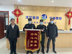 高先生接到孩子后如釋重負(fù),激動(dòng)的對(duì)我們工作人員表示感謝并對(duì)我們?nèi)虩o(wú)死角的監(jiān)控系統(tǒng)大力稱贊。高先生于2月13上午將一面印有“盡心盡責(zé),熱心服務(wù)”的錦旗送到物業(yè)工作人員的手中,再次表達(dá)了對(duì)工作人員的感激之情。