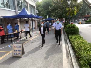 隨后,李玲主席親自帶領同行人員排隊完成了核酸檢測。