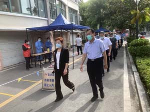9月8日,市政協(xié)主席李玲、副主席李斌攜政協(xié)部分人員來到秀水花園視察全市第22輪全民核酸檢測工作情況。組織部、辦事處、社區(qū)及華通物業(yè)等部門、單位相關領導陪同。