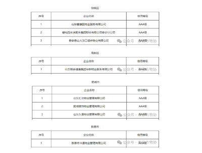 9月4日,泰安市房管中心發(fā)布泰安市2025年第二季度物業(yè)服務(wù)企業(yè)信用等級(jí)結(jié)果,根據(jù)《山東省物業(yè)服務(wù)企業(yè)信用信息管理辦法》(魯建物字【2019】4號(hào))有關(guān)規(guī)定,在山東省物業(yè)服務(wù)企業(yè)信用信息管理系統(tǒng)生成的企業(yè)信用等級(jí)中,新泰市華通物業(yè)管理有限公司喜獲“AAA級(jí)”等級(jí)認(rèn)證。