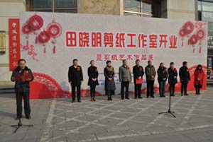 春回大地,萬象更新。2月7日,新泰文化藝術(shù)城隆重舉辦“田曉明剪紙工作室開業(yè)暨剪紙藝術(shù)作品展”,中共新泰市委宣傳部常務(wù)副部長范清君同志,新泰市文聯(lián)黨組書記贠相寶同志,新泰市殘聯(lián)理事長韓延光同志,新泰市總工會(huì)副主席李明芹同志,新泰市婦聯(lián)副主席王文娟同志,青云街道黨工委委員、宣傳委員張瓅銘同志,新泰市教育局體衛(wèi)藝教研究室主任趙鵬同志,新泰市文化館館長李勇同志等領(lǐng)導(dǎo)參加了開幕儀式,山東澤華置業(yè)集團(tuán)副總經(jīng)理王成喜同志出席開幕式,并為田曉明剪紙工作室開業(yè)揭牌。新泰市文廣新局黨委書記、局長高會(huì)利同志主持了開幕儀式。