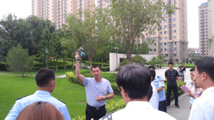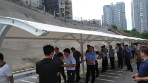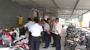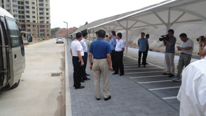 會(huì)議第一階段,市領(lǐng)導(dǎo)、消防大隊(duì)領(lǐng)導(dǎo)及各鄉(xiāng)鎮(zhèn)街道、物業(yè)公司乘車(chē)一同前往特變·森林花園、中心花園、府東新苑這三個(gè)電動(dòng)車(chē)充電樁車(chē)棚試點(diǎn)小區(qū)。