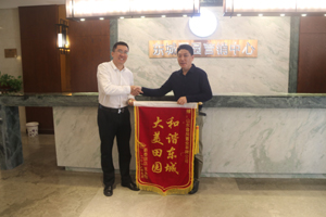 9月27日上午,公司業(yè)主王永棟先生在朋友的陪同下將一面紅底金字的錦旗送到公司東城田園營(yíng)銷中心,上書“和諧東城,大美田園”,對(duì)公司對(duì)待客戶誠(chéng)摯、負(fù)責(zé)的態(tài)度和高效、貼心的服務(wù)表示由衷的肯定和真誠(chéng)的謝意。王先生說,前幾天他到公司東城田園營(yíng)銷中心辦理個(gè)人業(yè)務(wù),由于自己馬上要出差,時(shí)間緊,公司業(yè)務(wù)辦理人員得知后主動(dòng)加班、冒雨協(xié)助他快速辦理完成手續(xù),讓他深受感動(dòng)和欣喜,感動(dòng)的是公司員工對(duì)待工作認(rèn)真負(fù)責(zé)、快速高效的態(tài)度,欣喜的是作為公司業(yè)主,深刻體會(huì)到公司優(yōu)先為客戶著想,無私的服務(wù)理念。魯房置業(yè)公司副經(jīng)理王成朋代表公司接收了錦旗,并對(duì)王先生對(duì)公司的支持和理解表示衷心的感謝,業(yè)主的認(rèn)可和鼓勵(lì)是公司建設(shè)充滿“和諧大美”東城田園不懈的動(dòng)力。