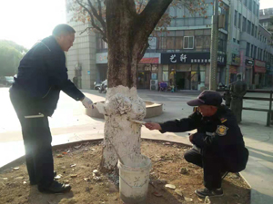 天氣漸冷,人們紛紛穿上了厚衣服,樹葉凋落,為樹木刷石灰水保溫的工作也在加緊進(jìn)行。華通物業(yè)公司所管理的各小區(qū)面積大、綠化多,樹木保溫工作量大。華通物業(yè)公司小區(qū)內(nèi)工作人員積極應(yīng)對,利用空余時間對管理內(nèi)各小區(qū)的綠化進(jìn)行了粉刷。保障了綠化的存活率,給業(yè)主創(chuàng)造一個舒適安逸的環(huán)境。(劉守邦)
