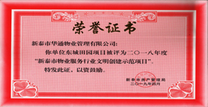 會(huì)上,房產(chǎn)管理服務(wù)中心按照2018年省和泰安開(kāi)展文明行業(yè)創(chuàng)建活動(dòng)文件精神及要求,結(jié)合我市工作實(shí)際,對(duì)2018年開(kāi)展文明行業(yè)創(chuàng)建活動(dòng)先進(jìn)單位、項(xiàng)目和個(gè)人進(jìn)行表彰和獎(jiǎng)勵(lì),新泰市華通物業(yè)管理有限公司獲得2018年度新泰市文明行業(yè)創(chuàng)建活動(dòng)標(biāo)兵企業(yè)稱(chēng)號(hào),華通物業(yè)服務(wù)的東城田園小區(qū)獲得2018年度新泰市文明行業(yè)創(chuàng)建活動(dòng)示范項(xiàng)目稱(chēng)號(hào)。(張遷)
