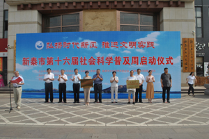 6月12日,新泰市第十六屆社會科學(xué)普及周啟動儀式在文化藝術(shù)城隆重開幕。本次活動由泰安市社科聯(lián)、中共新泰市委宣傳部、新泰市社科聯(lián)、新泰市青云街道辦事處主辦,山東澤華置業(yè)集團(tuán)有限公司承辦;新泰文化藝術(shù)城、新泰文創(chuàng)街協(xié)辦。出席今天儀式的領(lǐng)導(dǎo)有:泰安市社科聯(lián)主席黨組書記賈志秋同志;新泰市委常委、宣傳部長李玲同志;新泰市委宣傳部常務(wù)副部長范清君同志;泰安社科聯(lián)辦公室主任梁國華同志;市社科聯(lián)黨組書記贠相寶同志;泰安社科聯(lián)辦公室副主任韓超同志;青云街道辦事處黨工委副書記丁洪存同志;山東澤華置業(yè)集團(tuán)副總經(jīng)理、新泰市文化產(chǎn)業(yè)協(xié)會主席王成喜同志。新泰市文聯(lián)社科聯(lián)主席徐勤啟同志主持了啟動儀式。