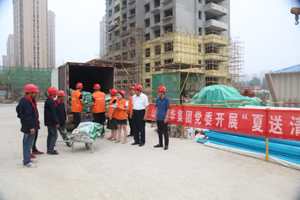 2019年7月23日上午,山東澤華集團黨委書記田清坤、副總經(jīng)理兼工會主席周建根、山東中房建工副總經(jīng)理彭利帶領(lǐng)黨員志愿服務(wù)隊、青年志愿服務(wù)隊等有關(guān)人員冒著高溫酷暑,深入施工一線慰問一線員工,為奮戰(zhàn)在一線的施工人員送上一份“清涼”,送上一份關(guān)愛。(喬田利)